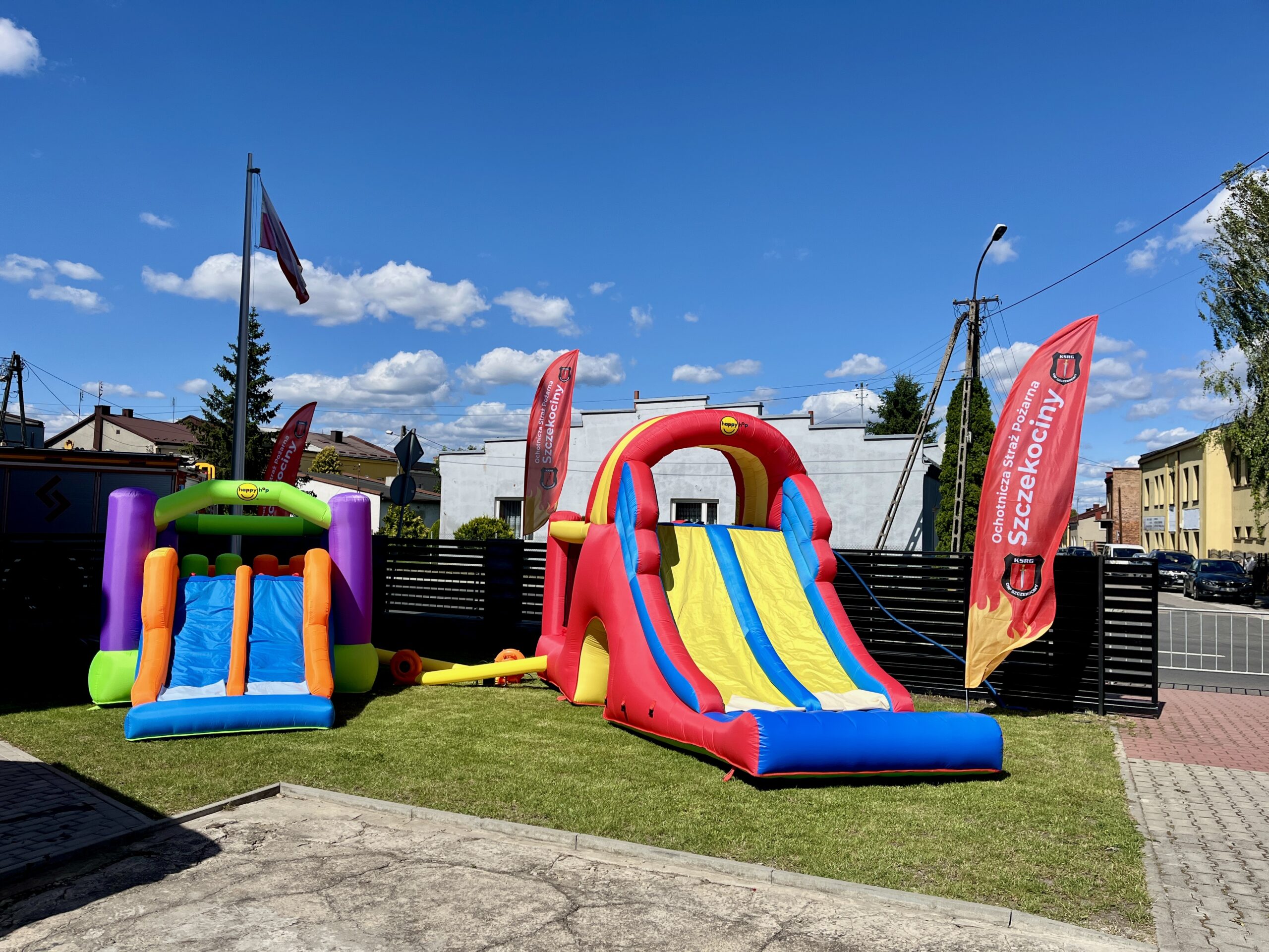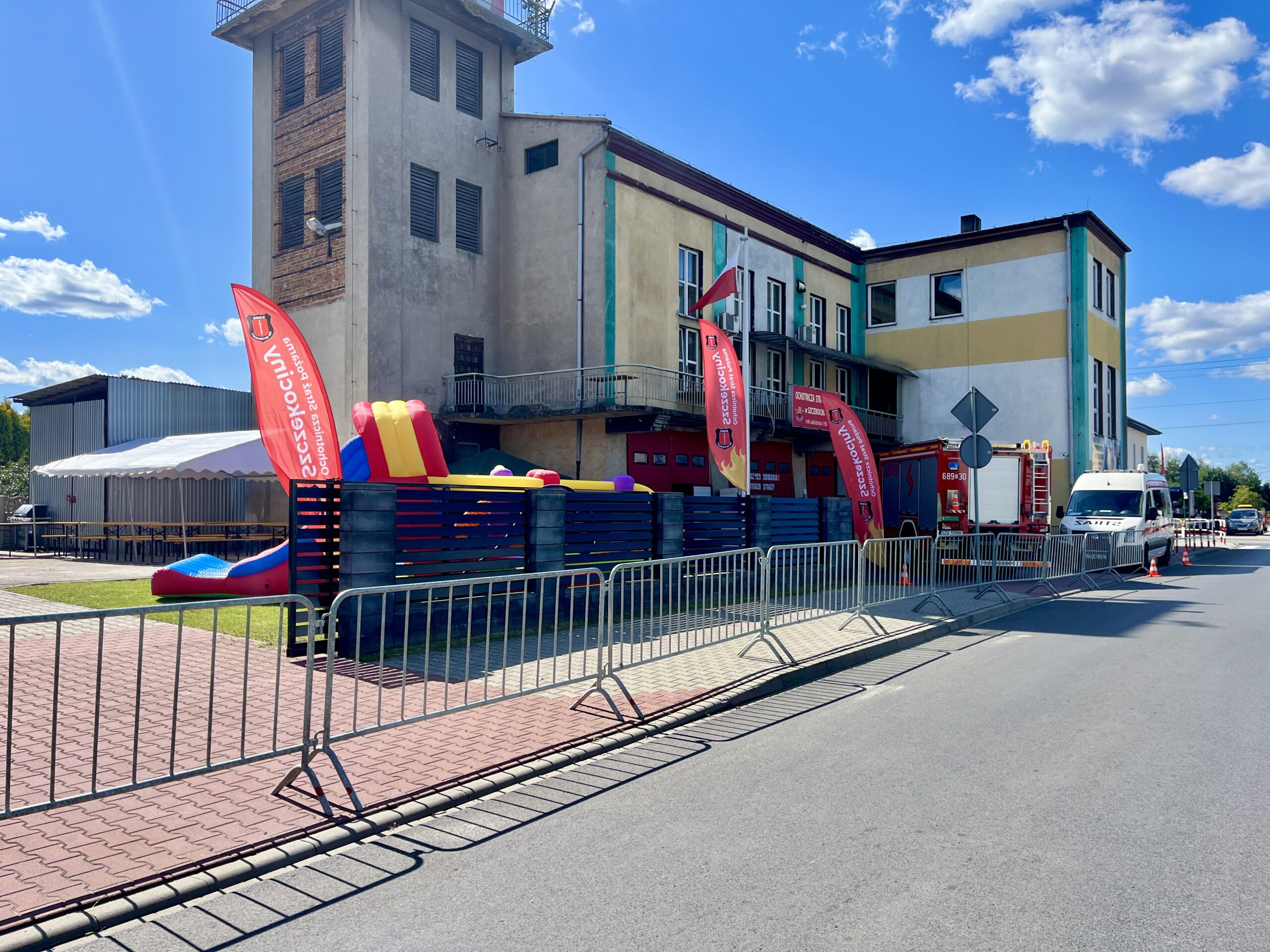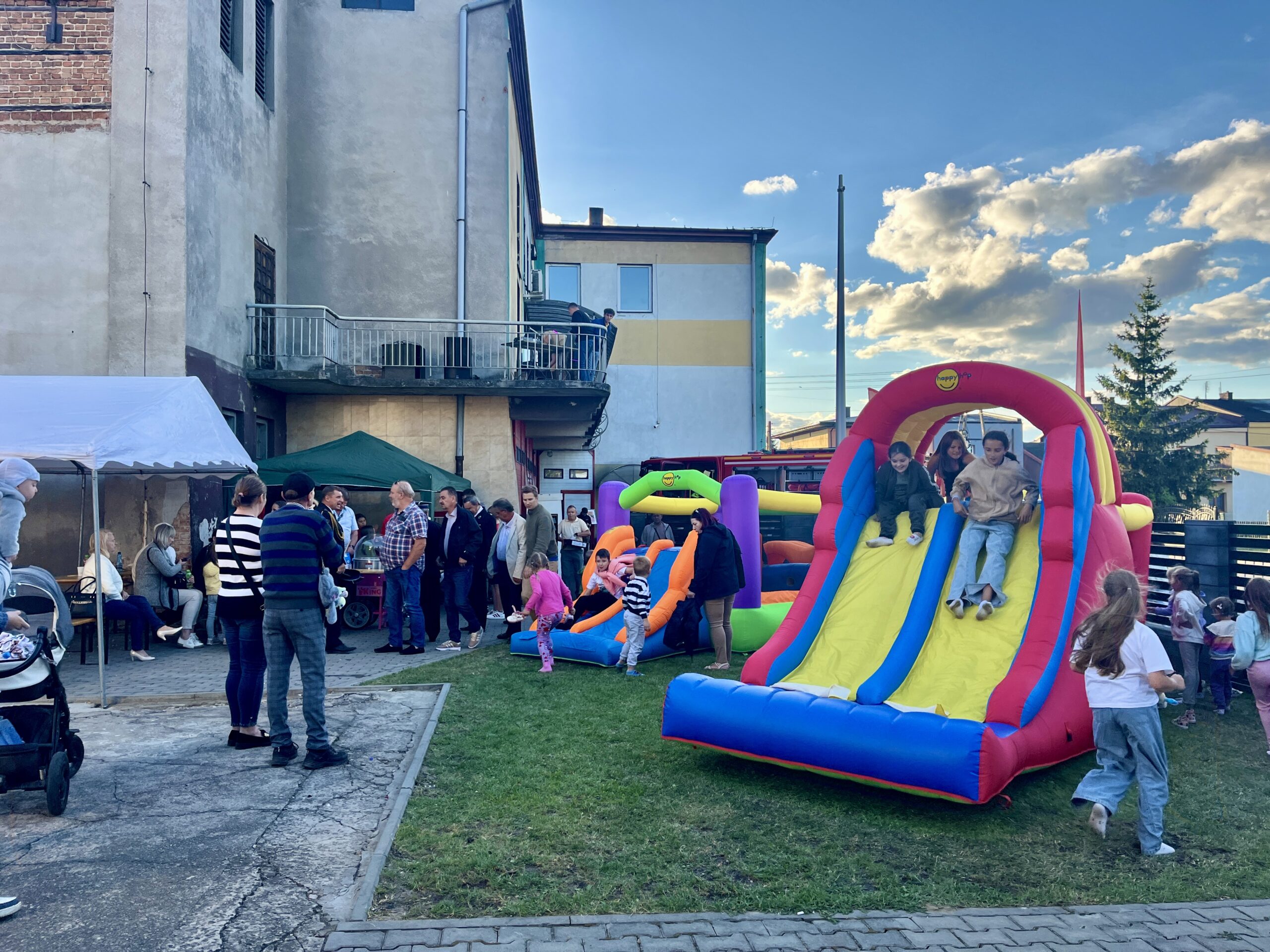Dodatkową radość dzieciom przyniosły dmuchańce. Mieszkańcy mieli wyjątkową okazję, aby poznać naszą jednostkę od środka, zwiedzić boksy garażowe i zapoznać się z wyposażeniem oraz sprzętem ratowniczym, który na co dzień służy lokalnej społeczności.